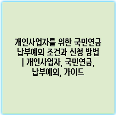 개인사업자를 위한 국민연금 납부예외 조건과 신청 방법 | 개인사업자, 국민연금, 납부예외, 가이드 에 대해 자주 묻는 질문 TOP 5