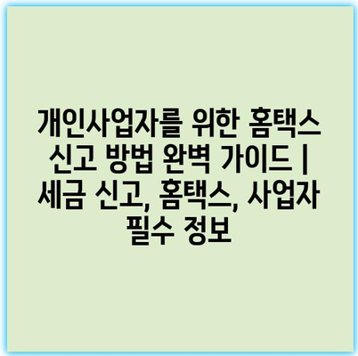 개인사업자를 위한 홈택스 신고 방법 완벽 가이드 | 세금 신고, 홈택스, 사업자 필수 정보