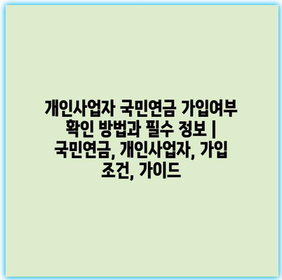 개인사업자 국민연금 가입여부 확인 방법과 필수 정보 | 국민연금, 개인사업자, 가입 조건, 가이드 에 대해 자주 묻는 질문 TOP 5