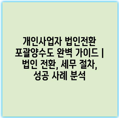 개인사업자 법인전환 포괄양수도 완벽 가이드 | 법인 전환, 세무 절차, 성공 사례 분석
