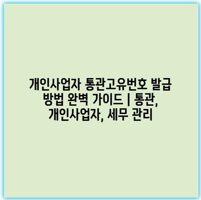 개인사업자 통관고유번호 발급 방법 완벽 가이드 | 통관, 개인사업자, 세무 관리 에 대해 자주 묻는 질문 TOP 5
