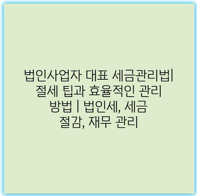 법인사업자 대표 세금관리법| 절세 팁과 효율적인 관리 방법 | 법인세, 세금 절감, 재무 관리에 대한 내용을 소개합니다.