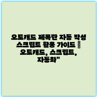 오토캐드 제목란 자동 작성 스크립트 활용 가이드 | 오토캐드, 스크립트, 자동화에 대해 자주 묻는 질문 TOP 5