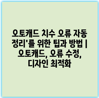 오토캐드에서 치수 오류가 발생했을 때, 이를 빠르고 효율적으로 수정하는 방법 중 하나는 자동 정리 기능을 활용하는 것입니다. 이 기능은 작업 시간을 단축시키고, 디자인 최적화를 도와줍니다. 다음에서는 자동 정리 기능에 대한 유용한 팁과 방법을 알려드리겠습니다.